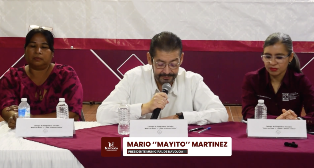 El Alcalde de Navojoa Lic. Mario Martín Martínez acompañó a la titular de la Secretaría de Desarrollo Social en Sonora (Sedesson), María Wendy Briceño Zuloaga, en el evento de otorgamiento de recursos en donde se beneficiaron 550 familias de colonias y comunidades quienes recibieron tarjetas de ambos programas de acuerdo al censo de la Sedesson, teniendo como sede el auditorio del Sindicato del IMSS.